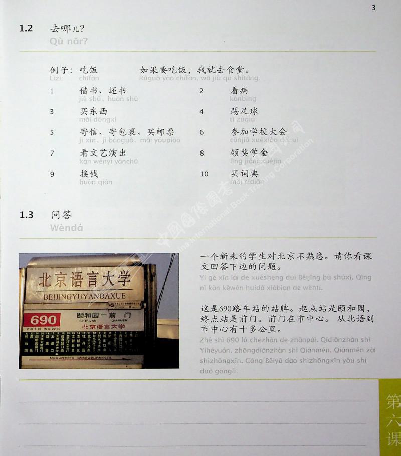 本书共计讲述了6-10课的内容。其中介绍了:校园留学生宿舍、北京的交通、交通事故、小说《骆驼祥子》、身体、中医、美容、审美观、搬家、租房、理想住房、民居、旅游方式、从上海到黄山、行程、写景诗。每一课都有练习、语法、生词等部分,供学者练习。