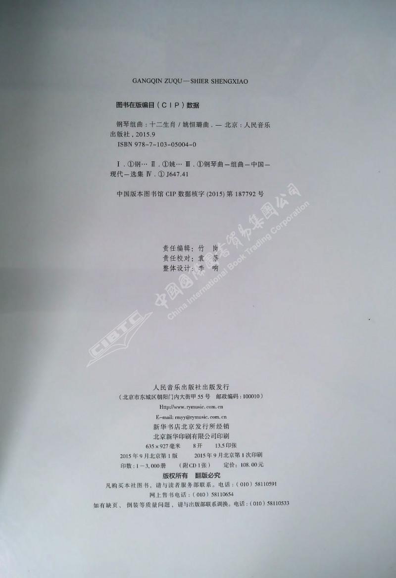 《十二生肖》钢琴组曲(附CD1张 )