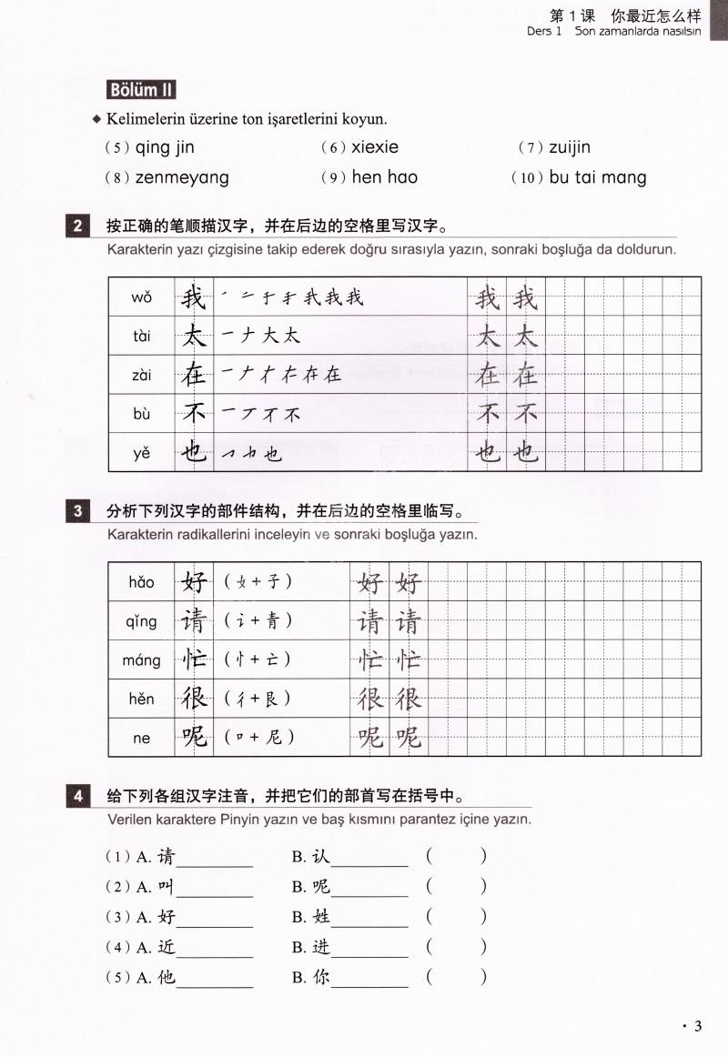 New Practical Chinese Reader (3rd Edition, Annotated in Turkish) Workbook 1